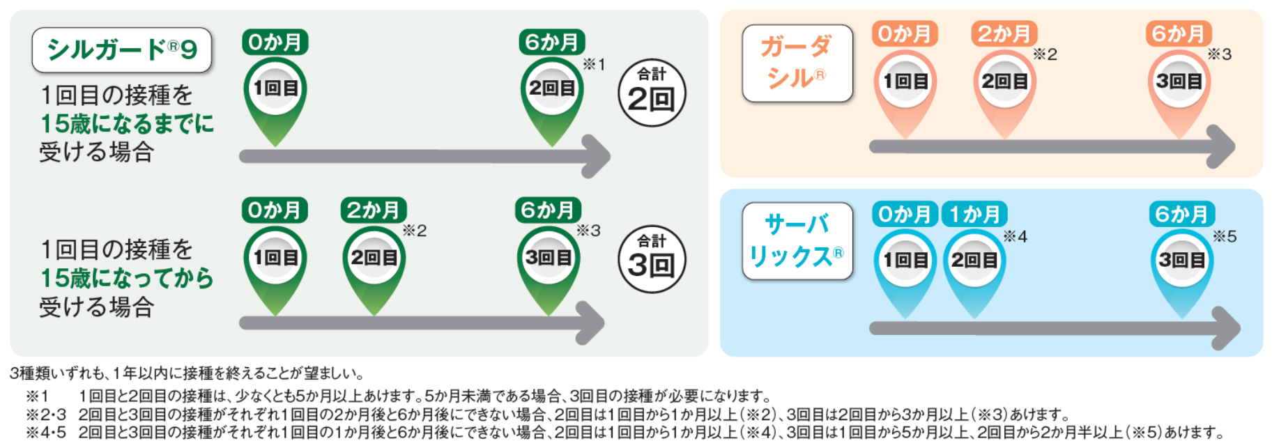 サーバリックス;2価ワクチン、ガーダシル;4価ワクチン、シルガード;9価ワクチン